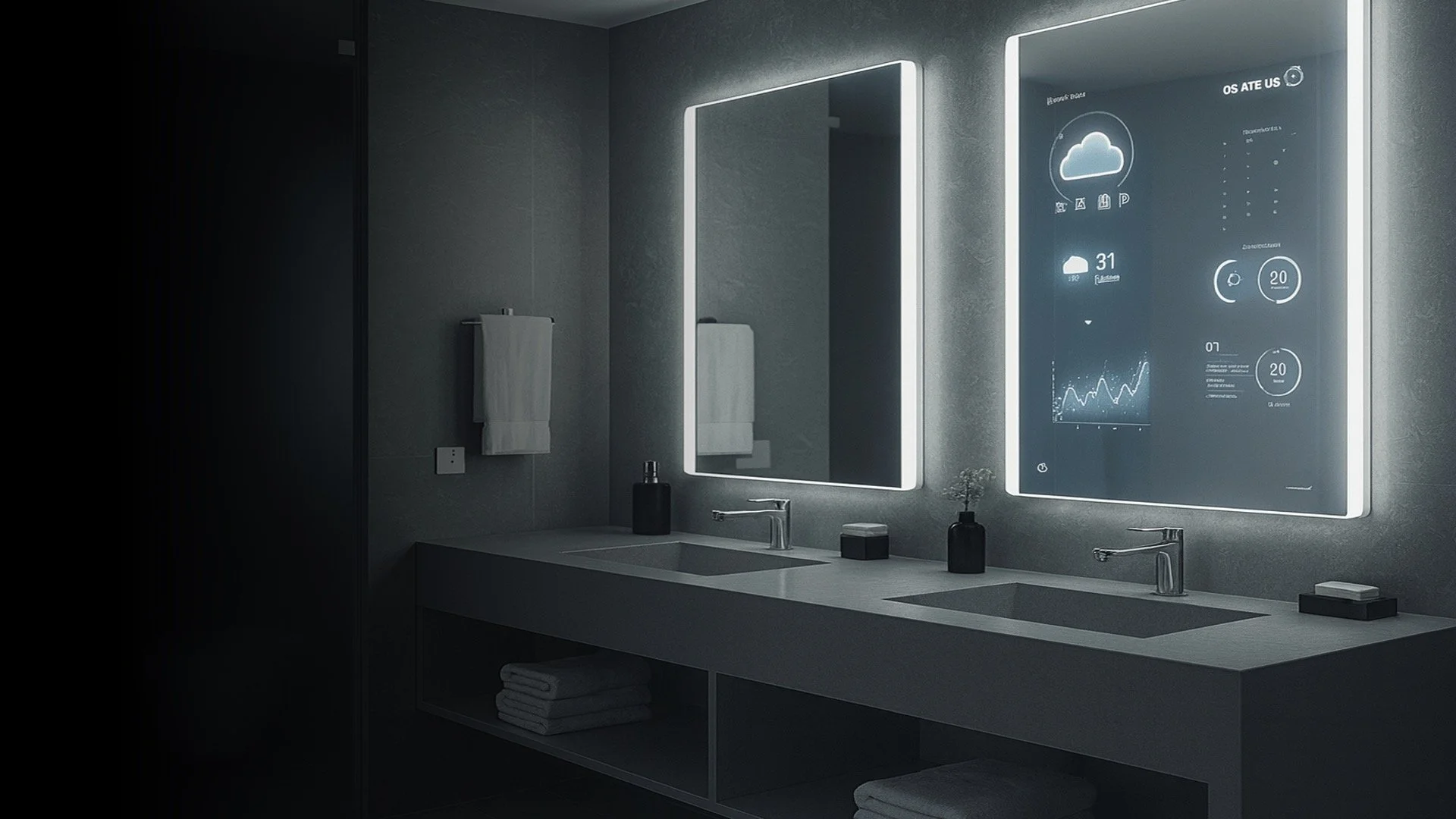 Vital IQ smart mirrors transform everyday routines into luxury experiences with crystal-clear reflection, anti-fog technology, adjustable LED lighting, and built-in Bluetooth audio. Perfect for homes, hotels, salons, and high-end commercial spaces, they combine style with functionality to create a sleek, modern atmosphere. Our Smart TV Mirrors take it a step further—seamlessly blending a premium mirror with an integrated high-definition smart TV. From streaming your favourite shows while getting ready to adding a touch of sophistication to living areas or suites, these mirrors bring elegance, convenience, and innovation together in one statement piece.